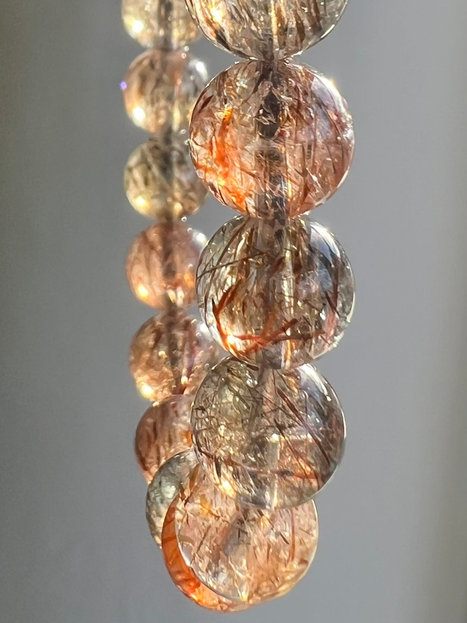 透明感のあるクォーツの中に、まるでルチルのように煌めく針状のマイカが内包された、とても珍しいブレスレット。