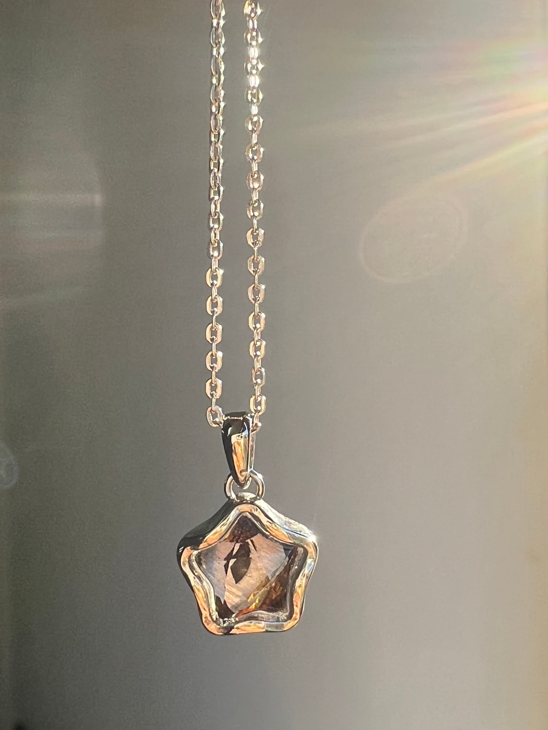 ステンドグラスのように美しい鉄とかんらん石(ペリドット)が混ざり合い、宇宙の神秘を身近に感じられるペンダントトップです⟡.·