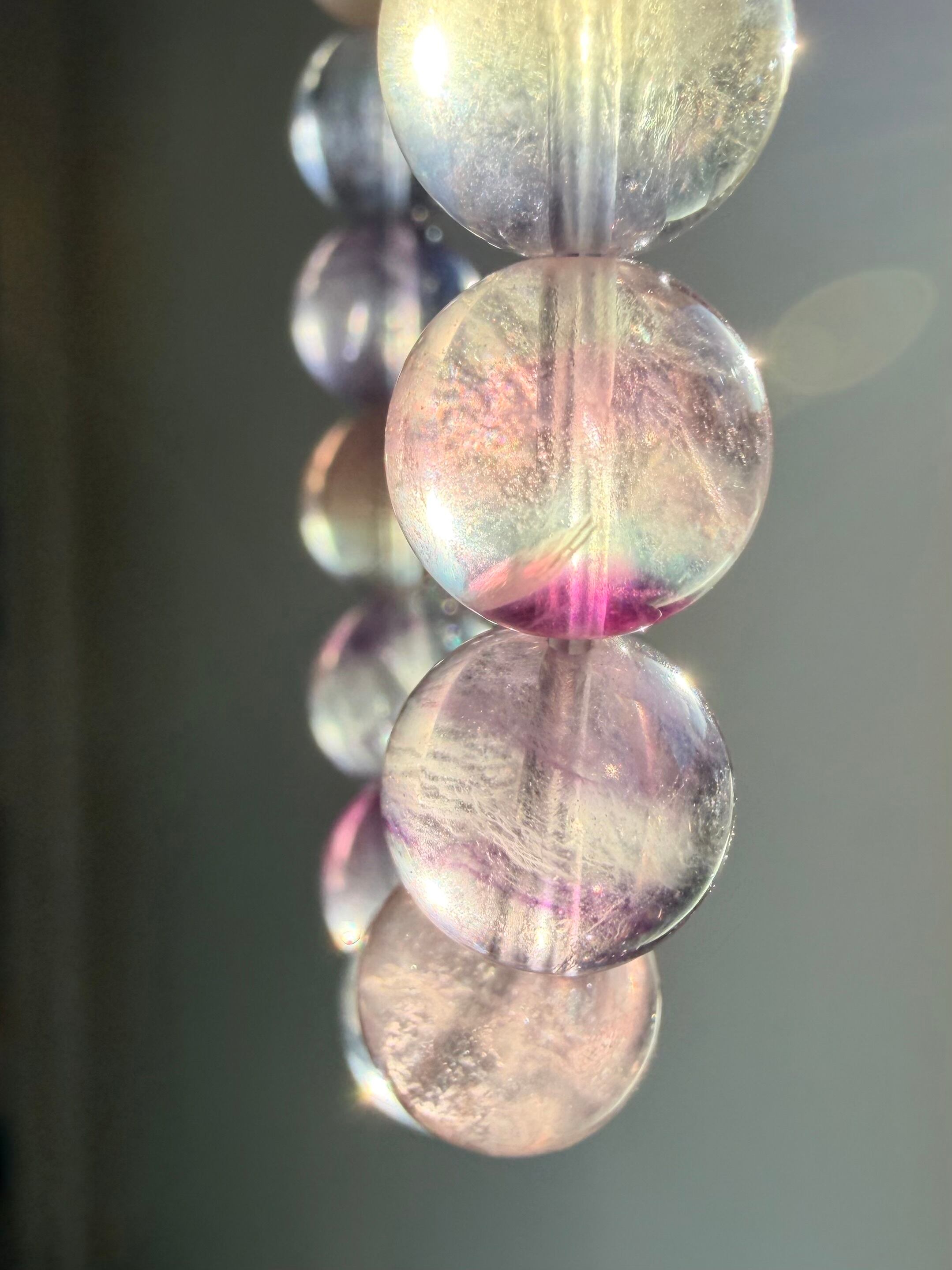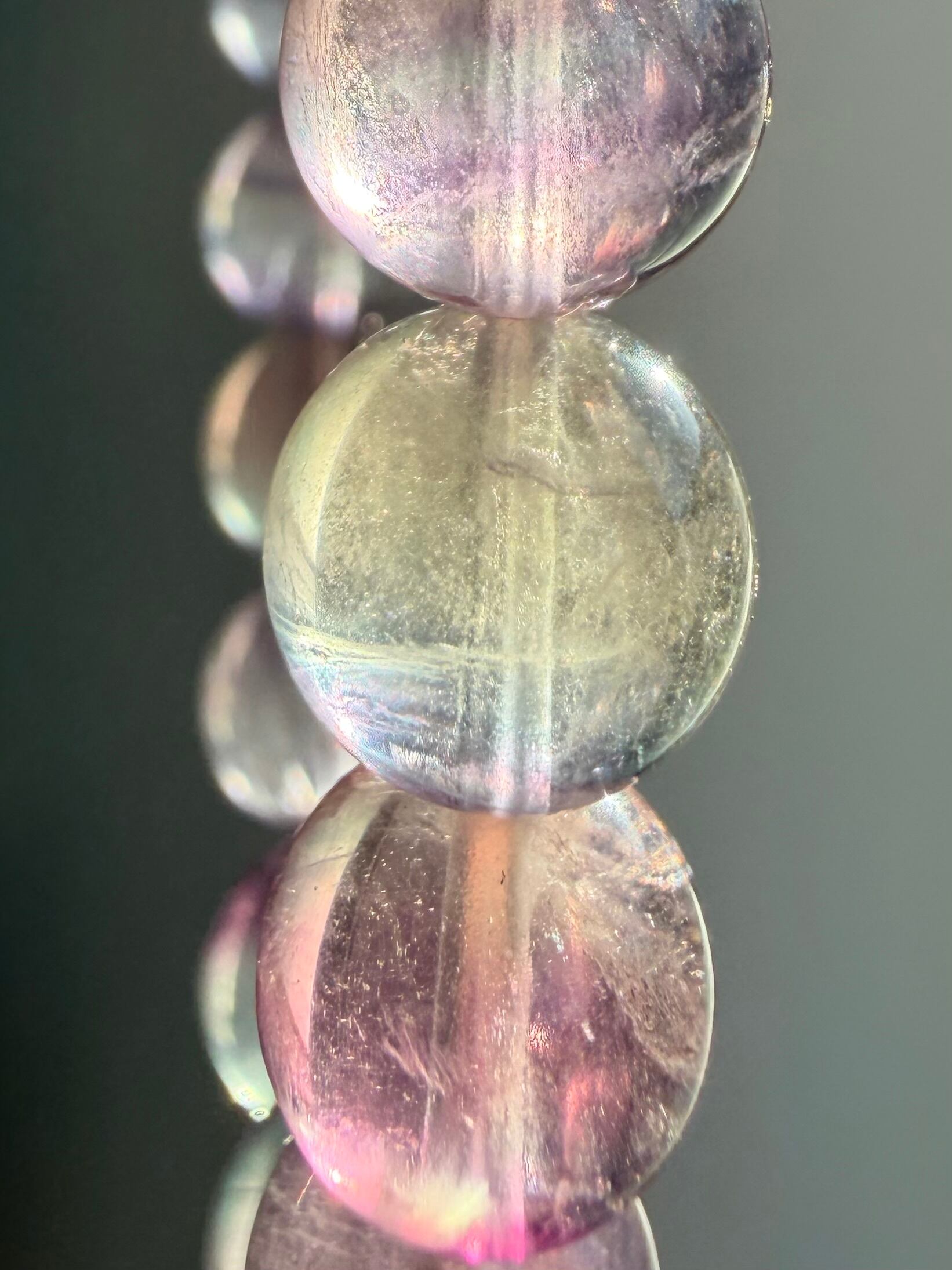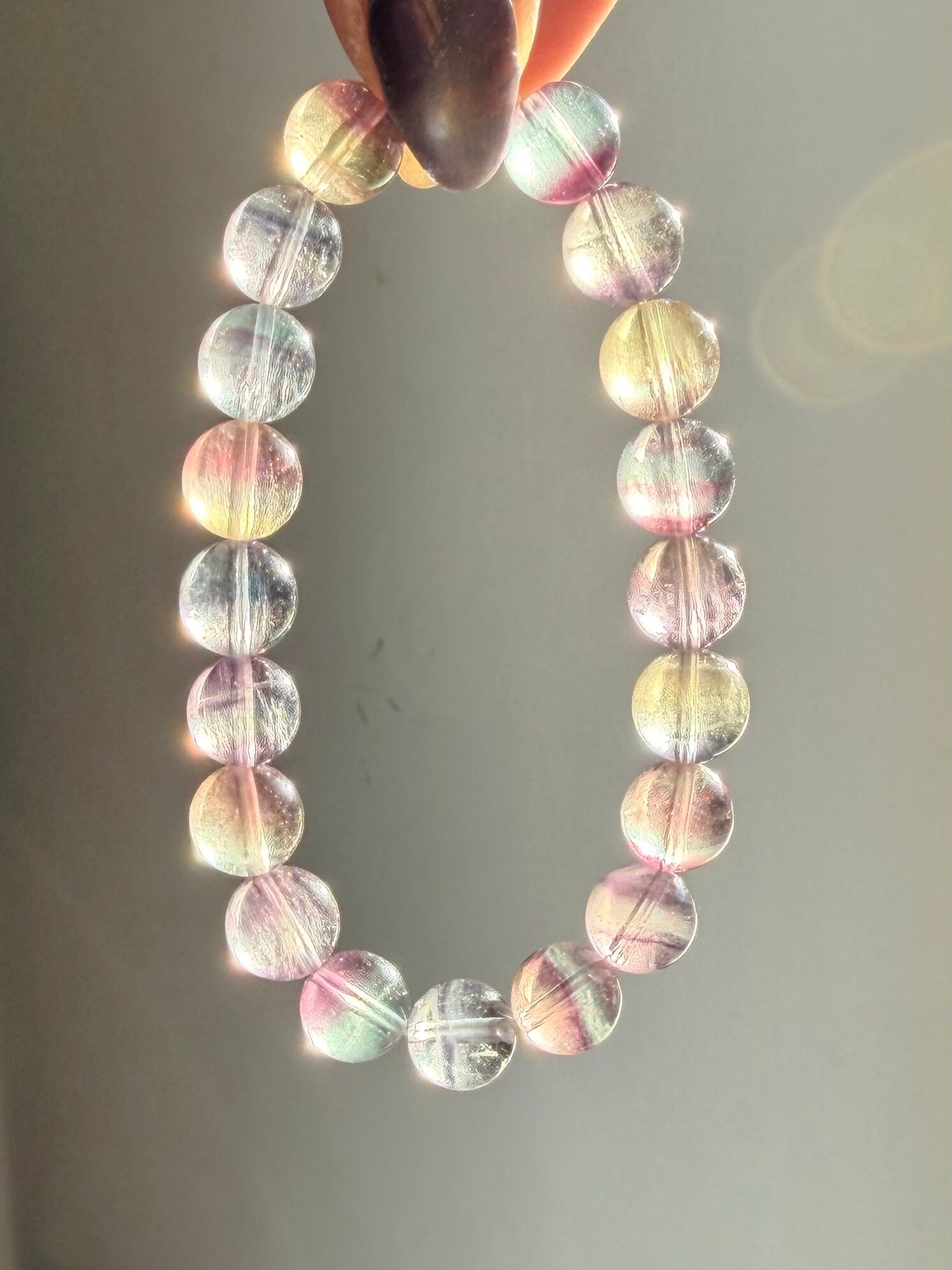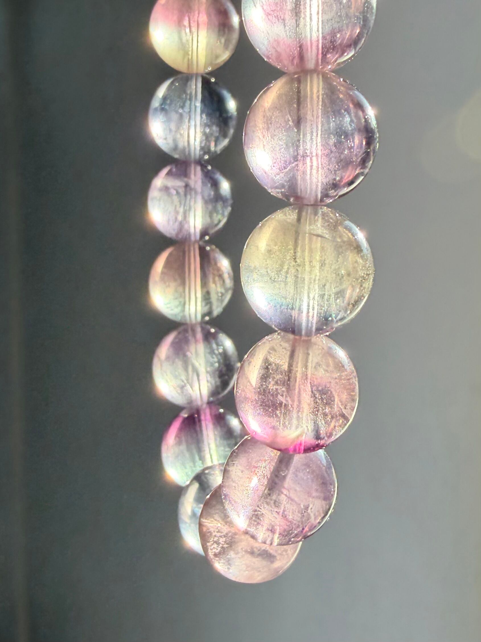 レインボーフローライトは、ひとつの結晶の中に複数の色を持つフローライトで、思考や感情をやさしく整理し、心と頭をスッキリ整えるサポートをしてくれる石です。