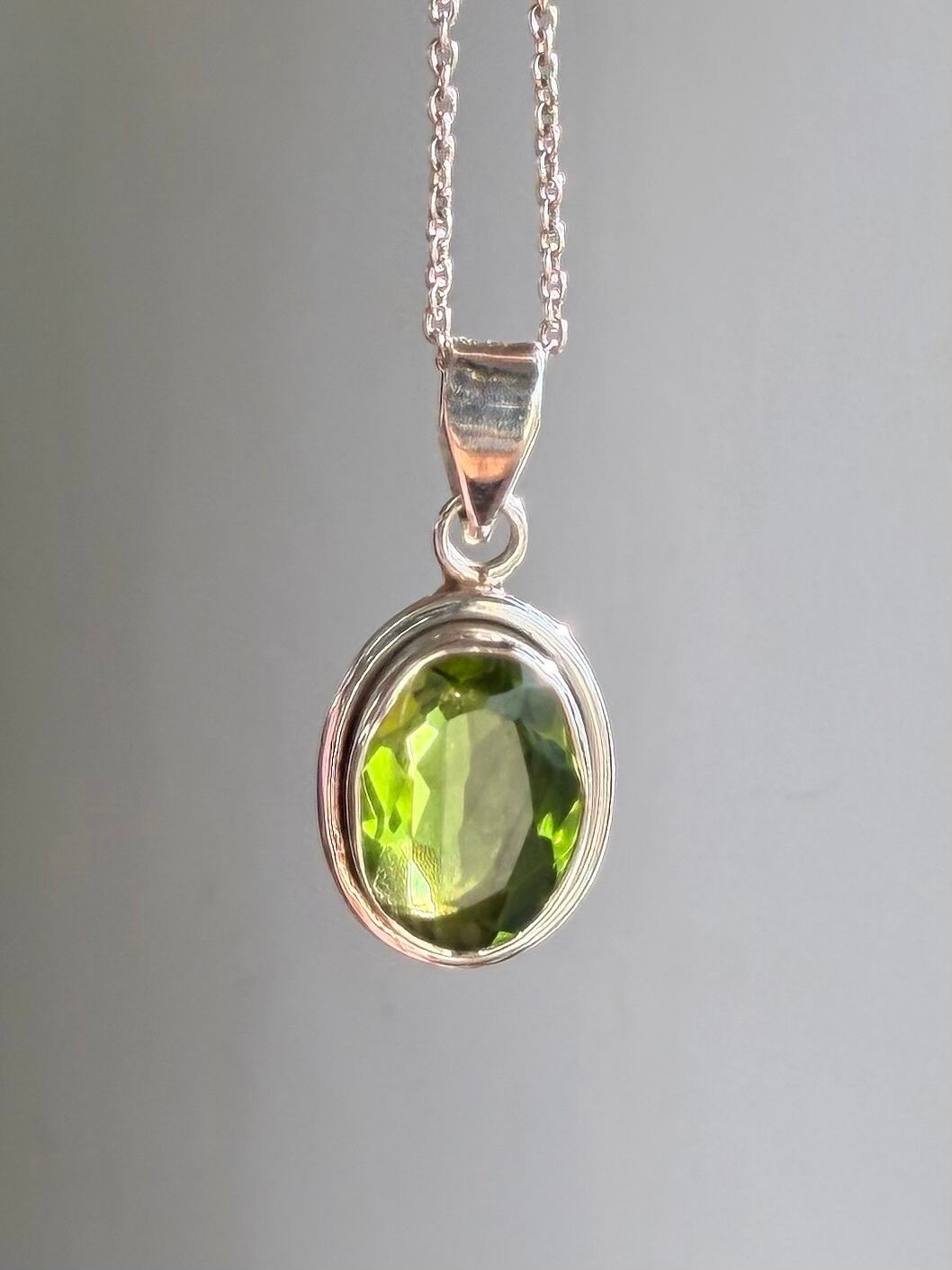 深みのあるグリーンが光を受けてきらめく、透明度の高い上質なペリドット。