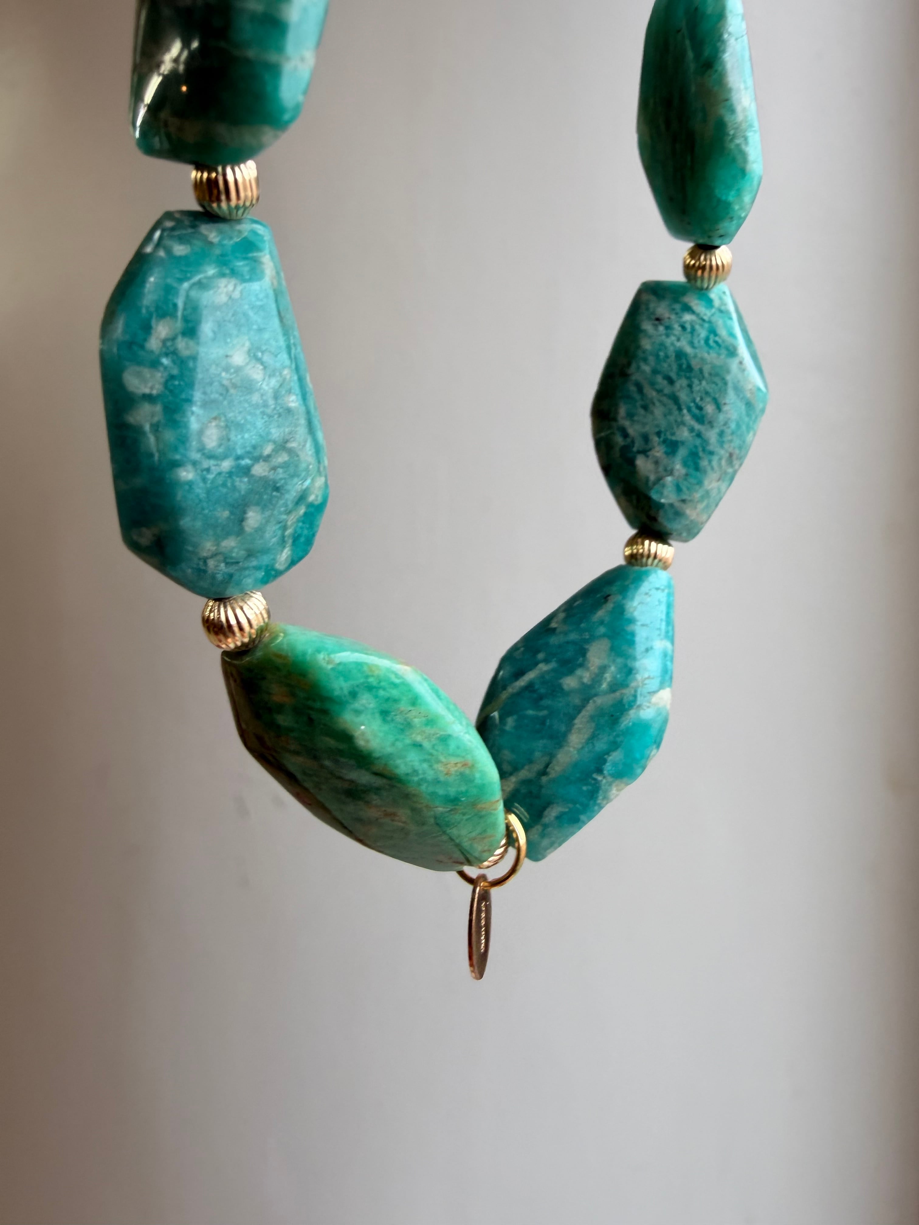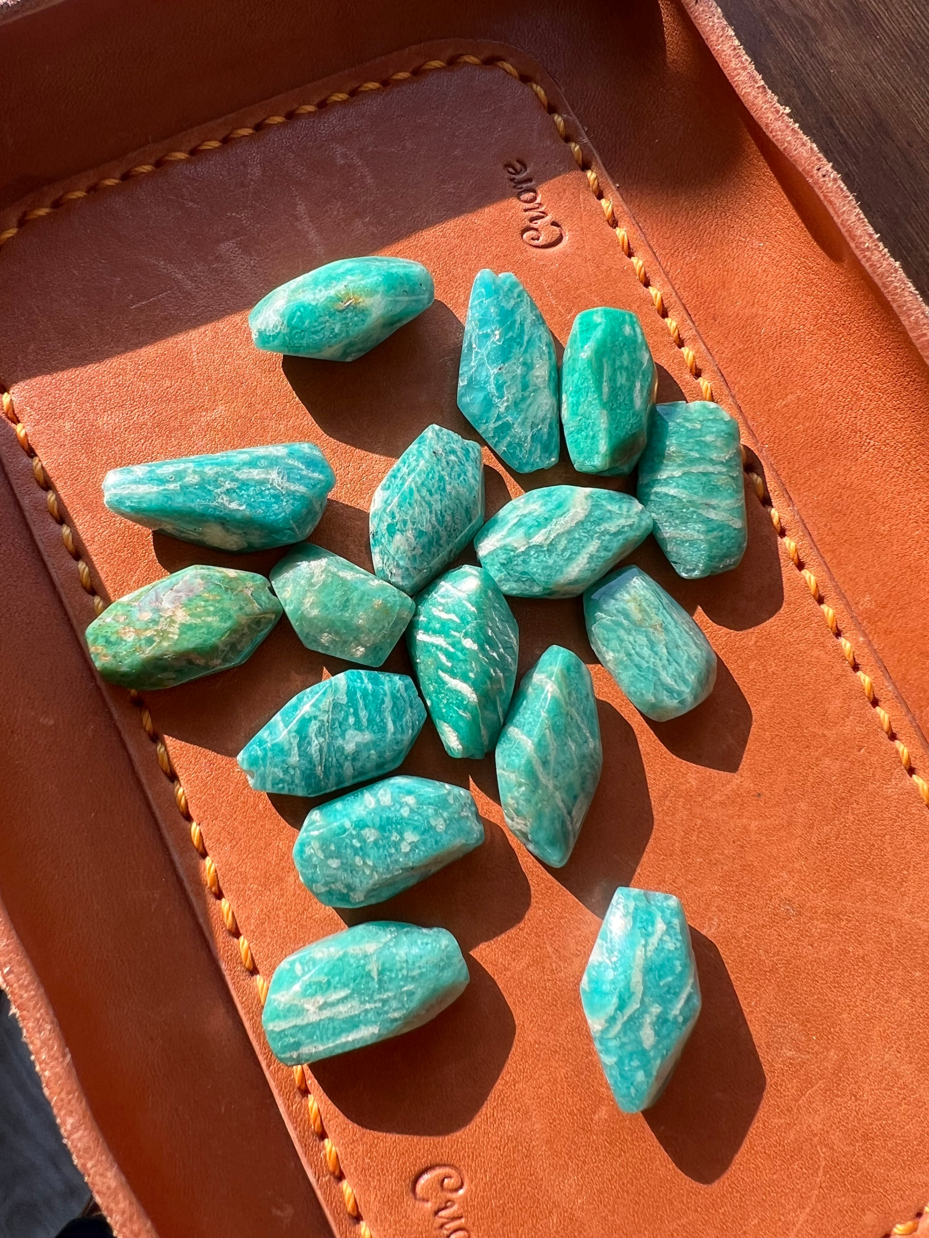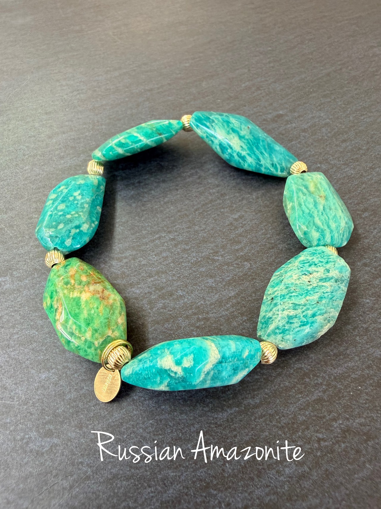 独特な模様の入ったロシアンアマゾナイトさん石の声を聴きながら、ひと粒ずつ丁寧に紡いでみましたෆ