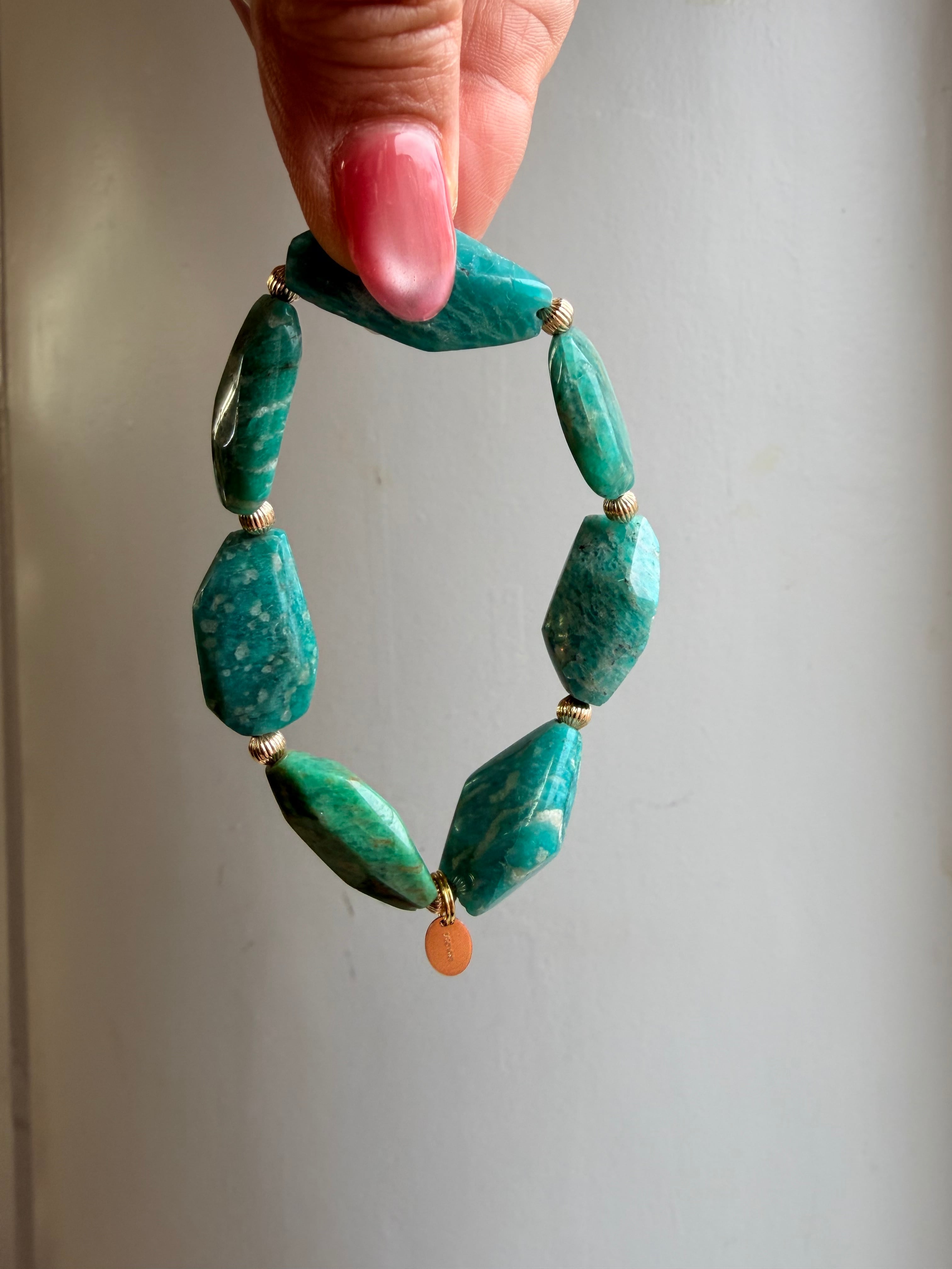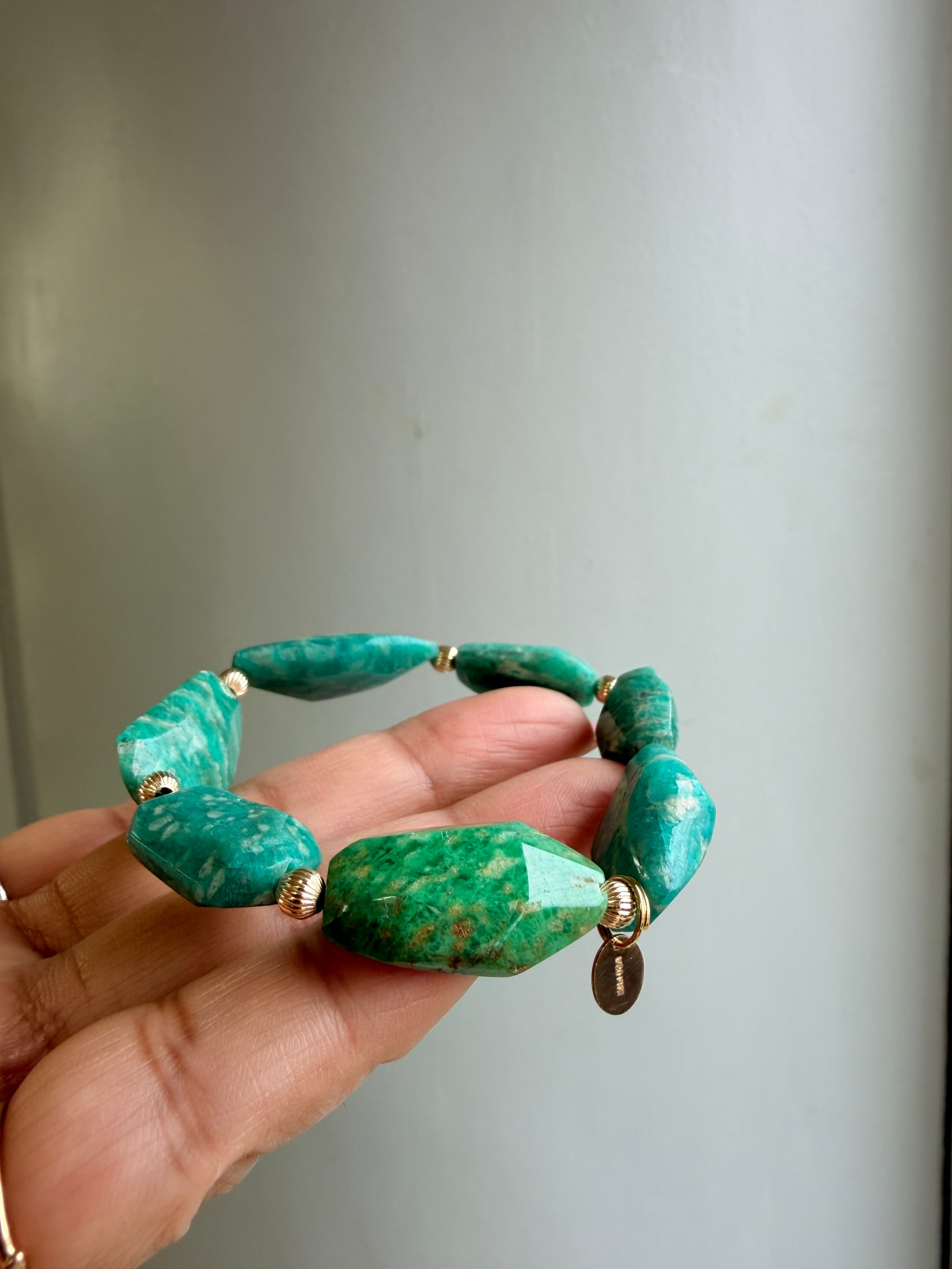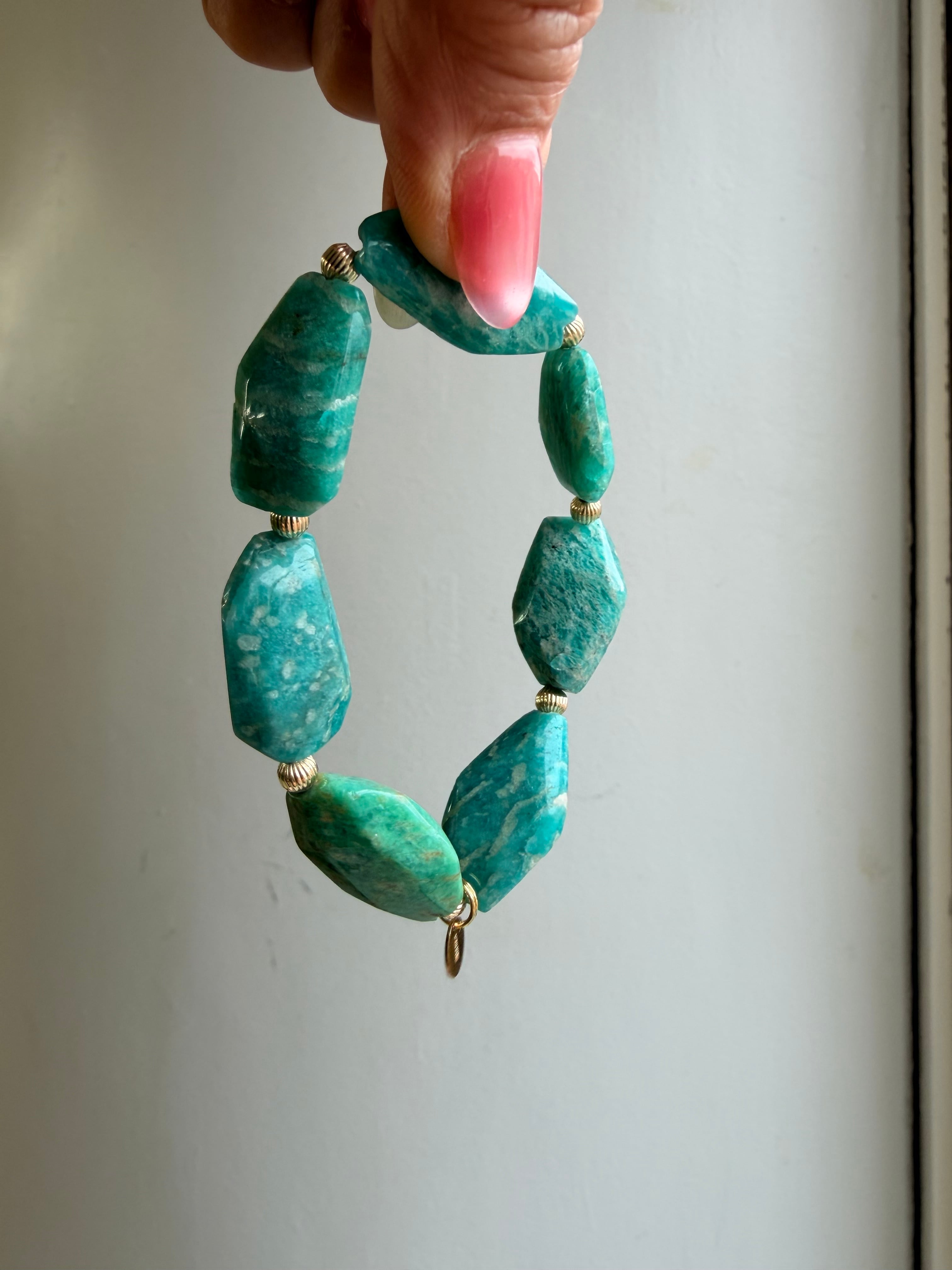 独特な模様の入ったロシアンアマゾナイトさん石の声を聴きながら、ひと粒ずつ丁寧に紡いでみましたෆ
