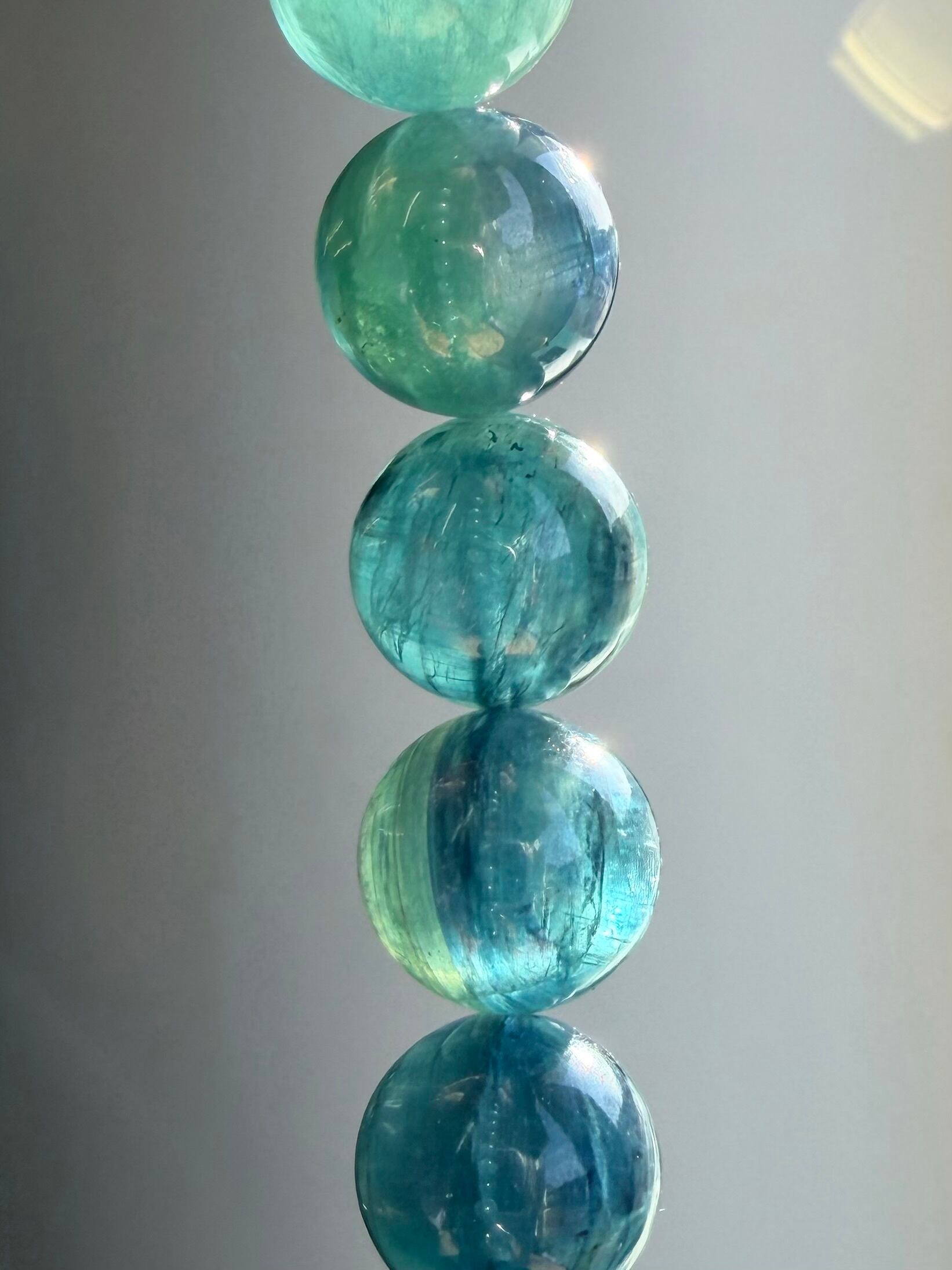 淡いブルーとグリーンが溶け合う、希少な色合いです。