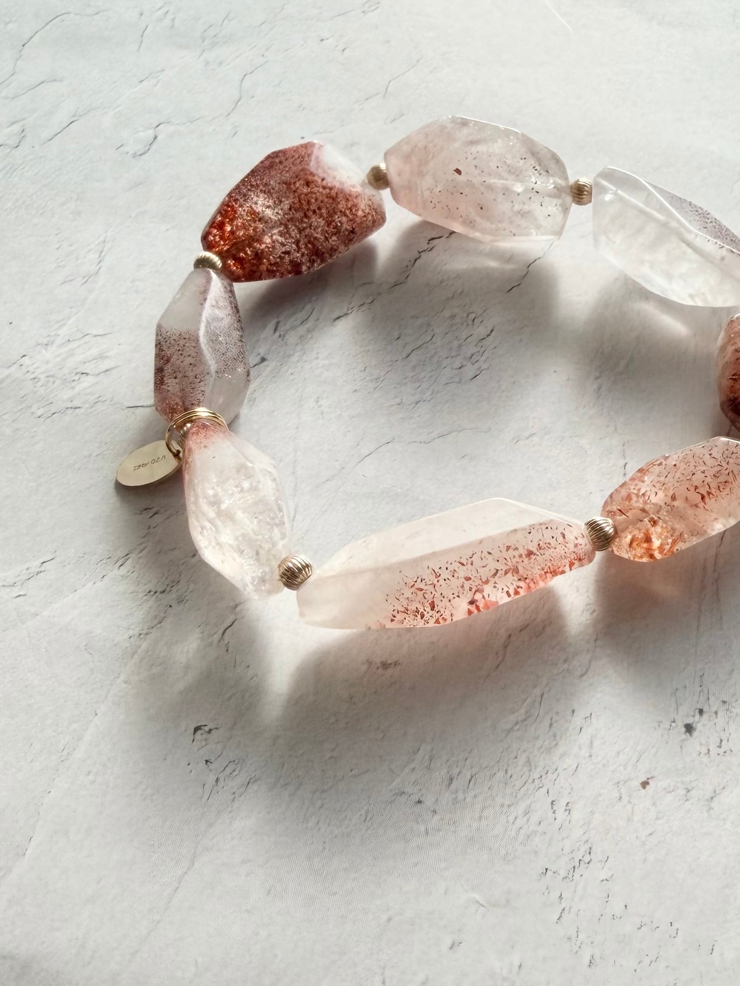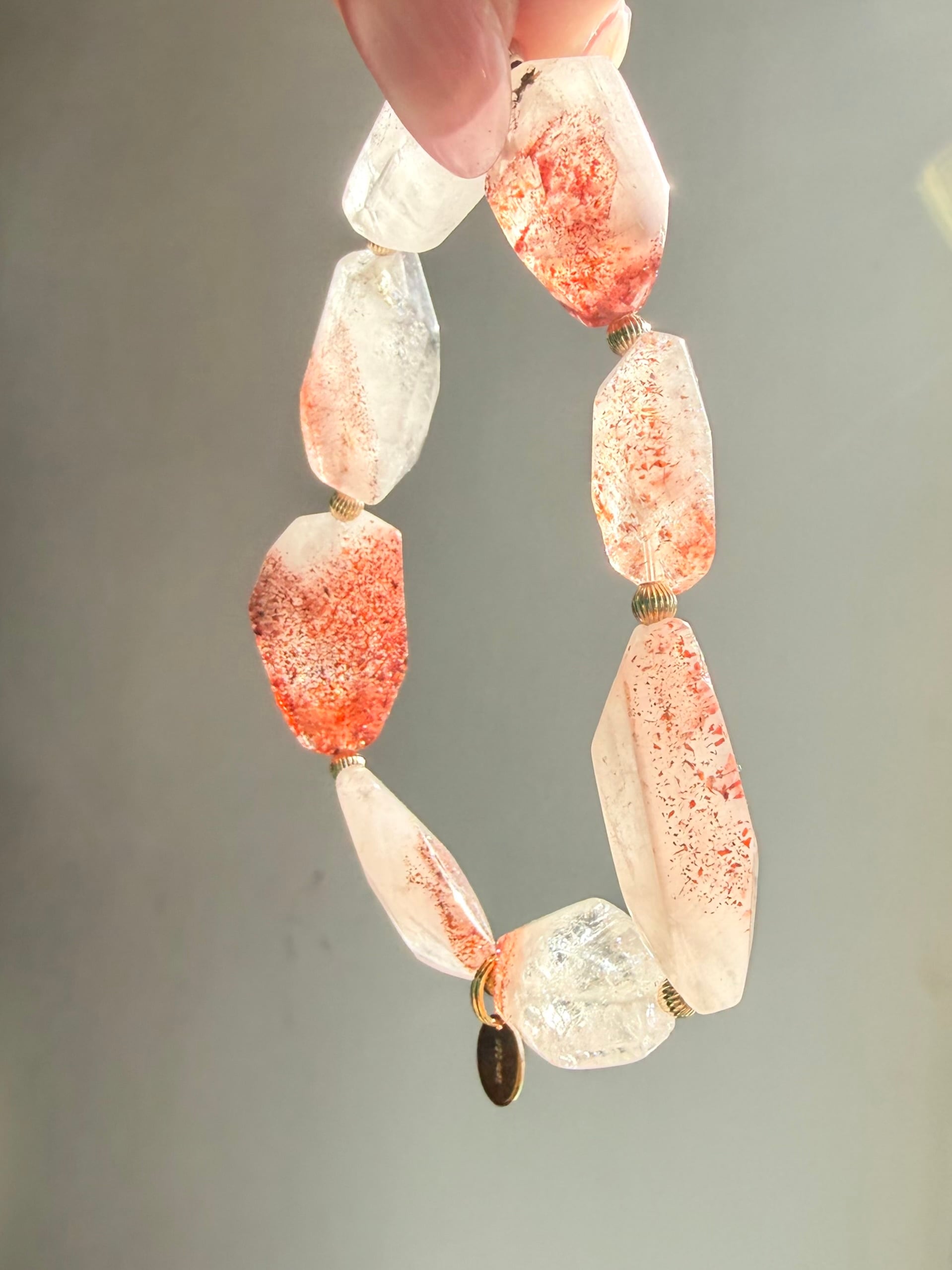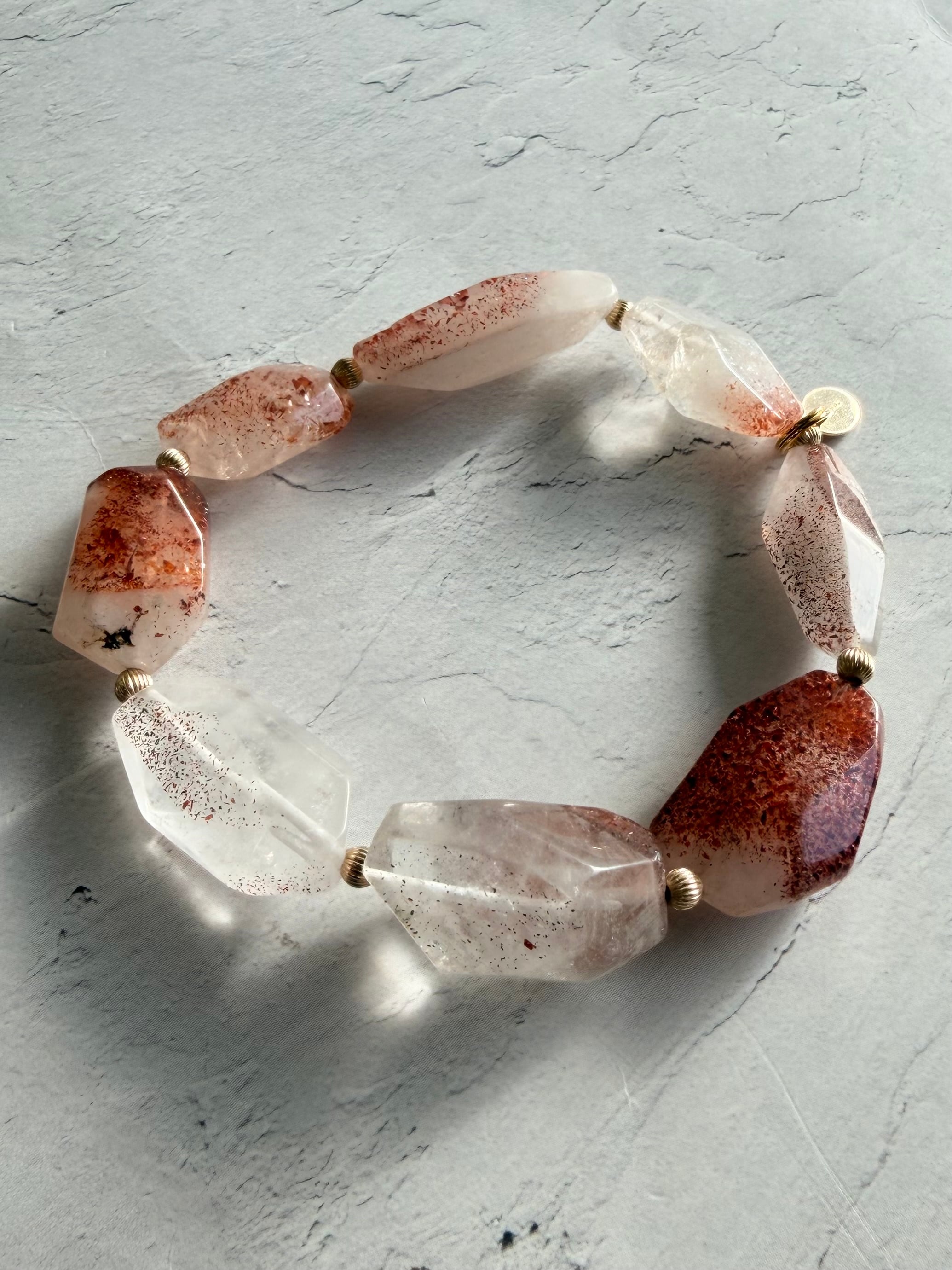 一粒ごとに違う模様を持つ、自然が描いた小さな赤いつぶつぶが素敵なレピドクロサイトインクォーツさんでデザインブレスレットを作ってみました✮*。゚