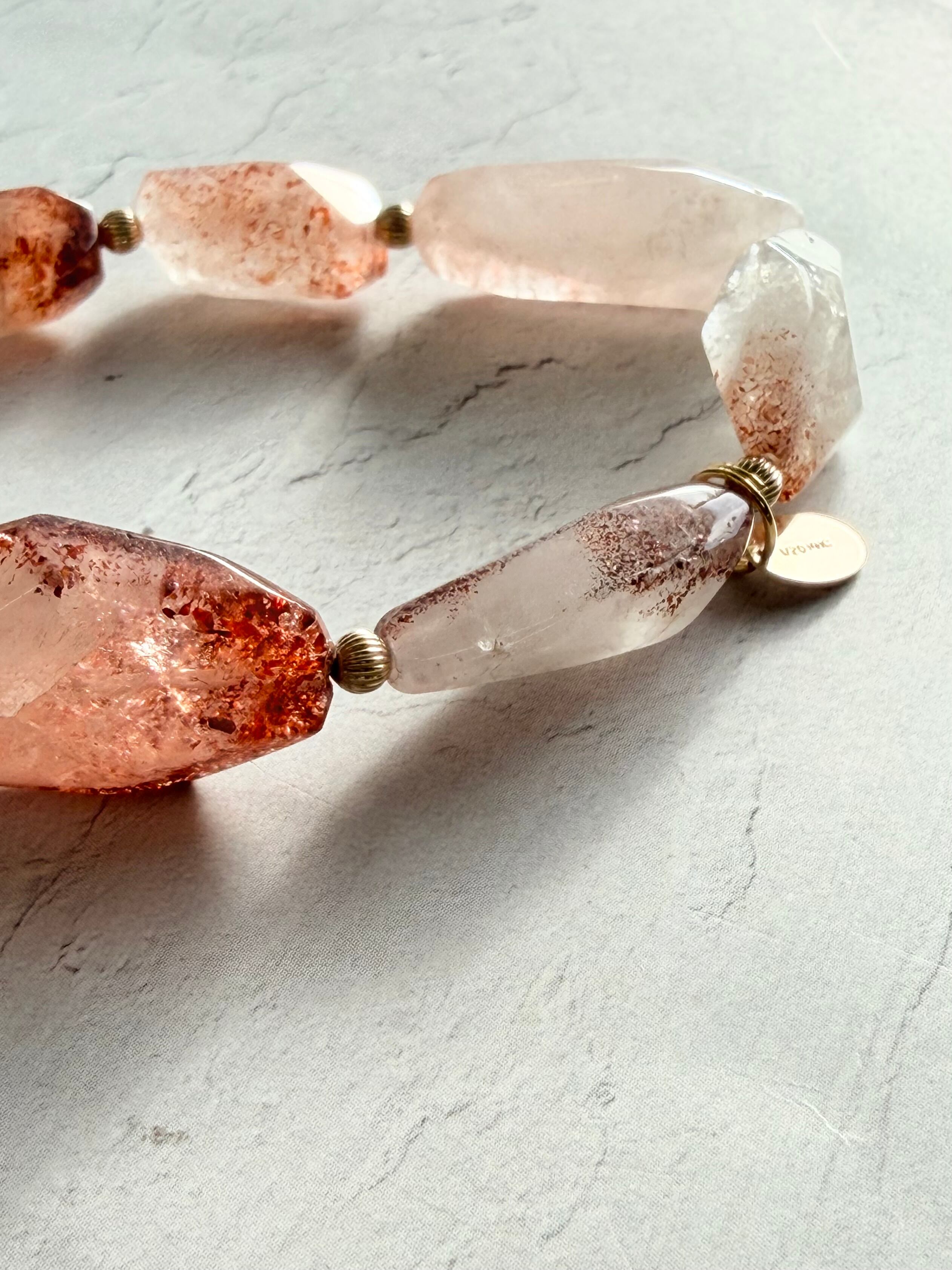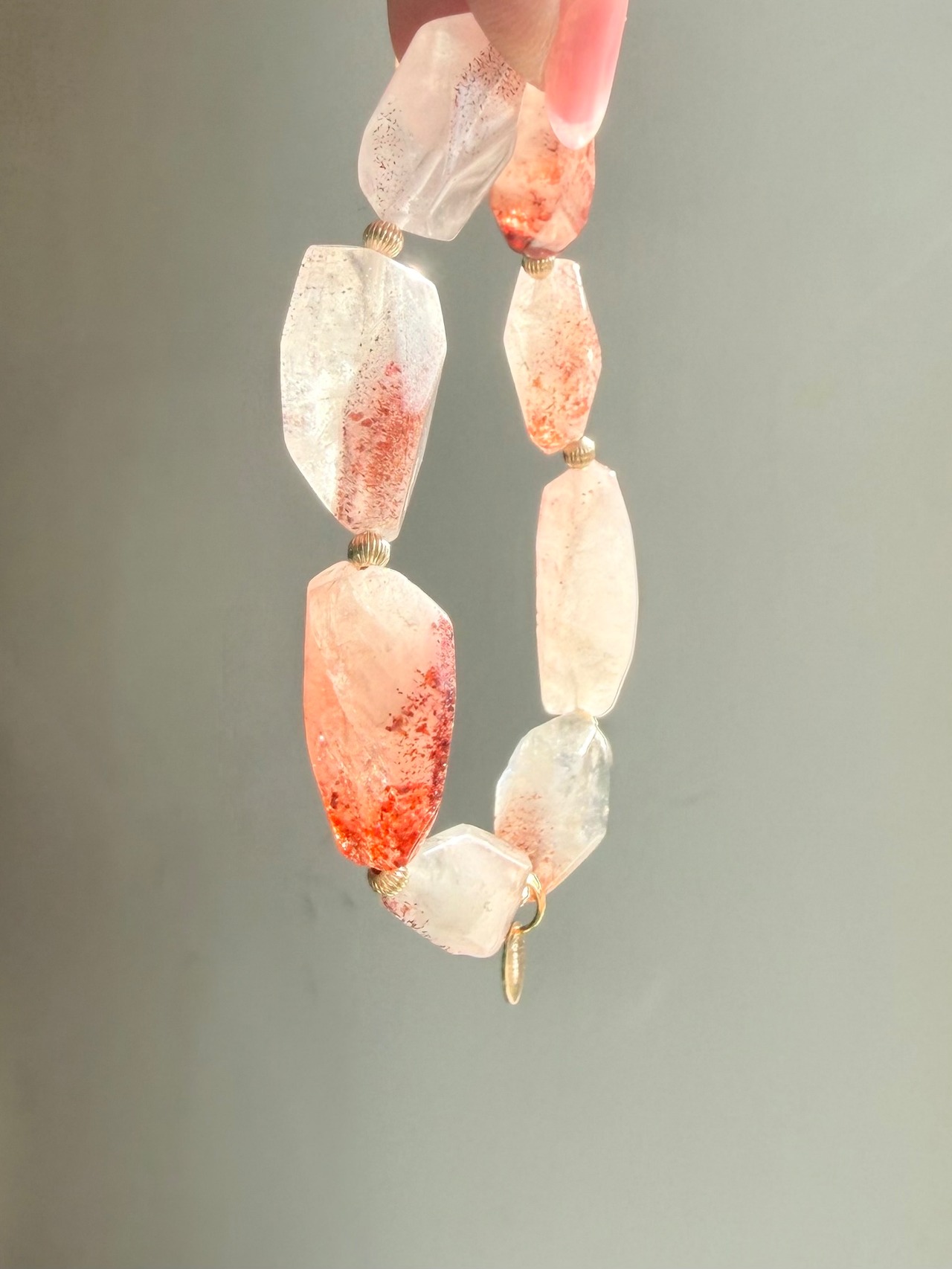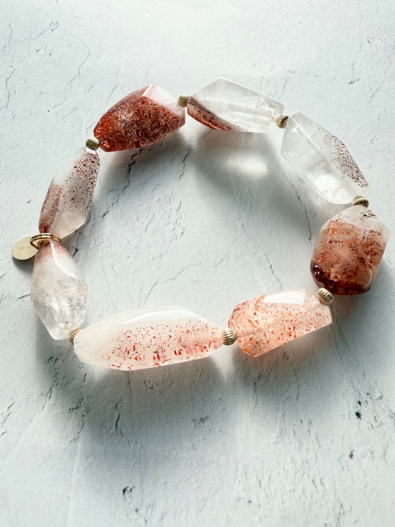 一粒ごとに違う模様を持つ、自然が描いた小さな赤いつぶつぶが素敵なレピドクロサイトインクォーツさんでデザインブレスレットを作ってみました✮*。゚