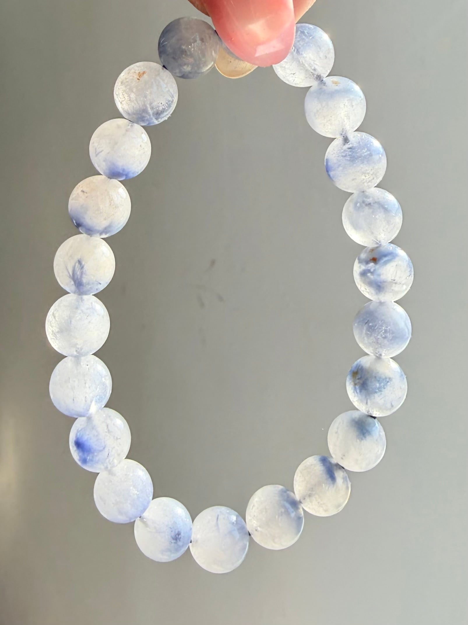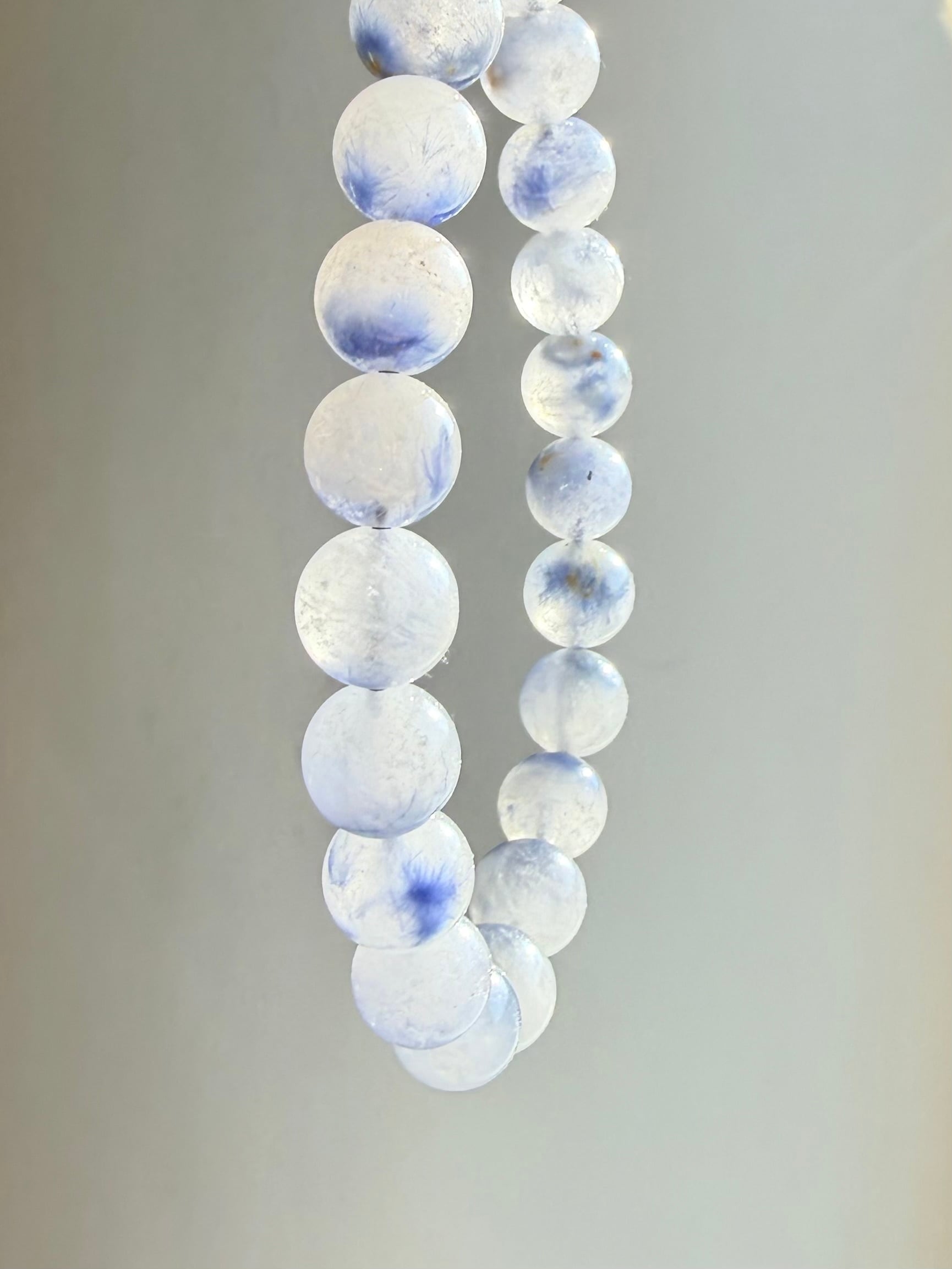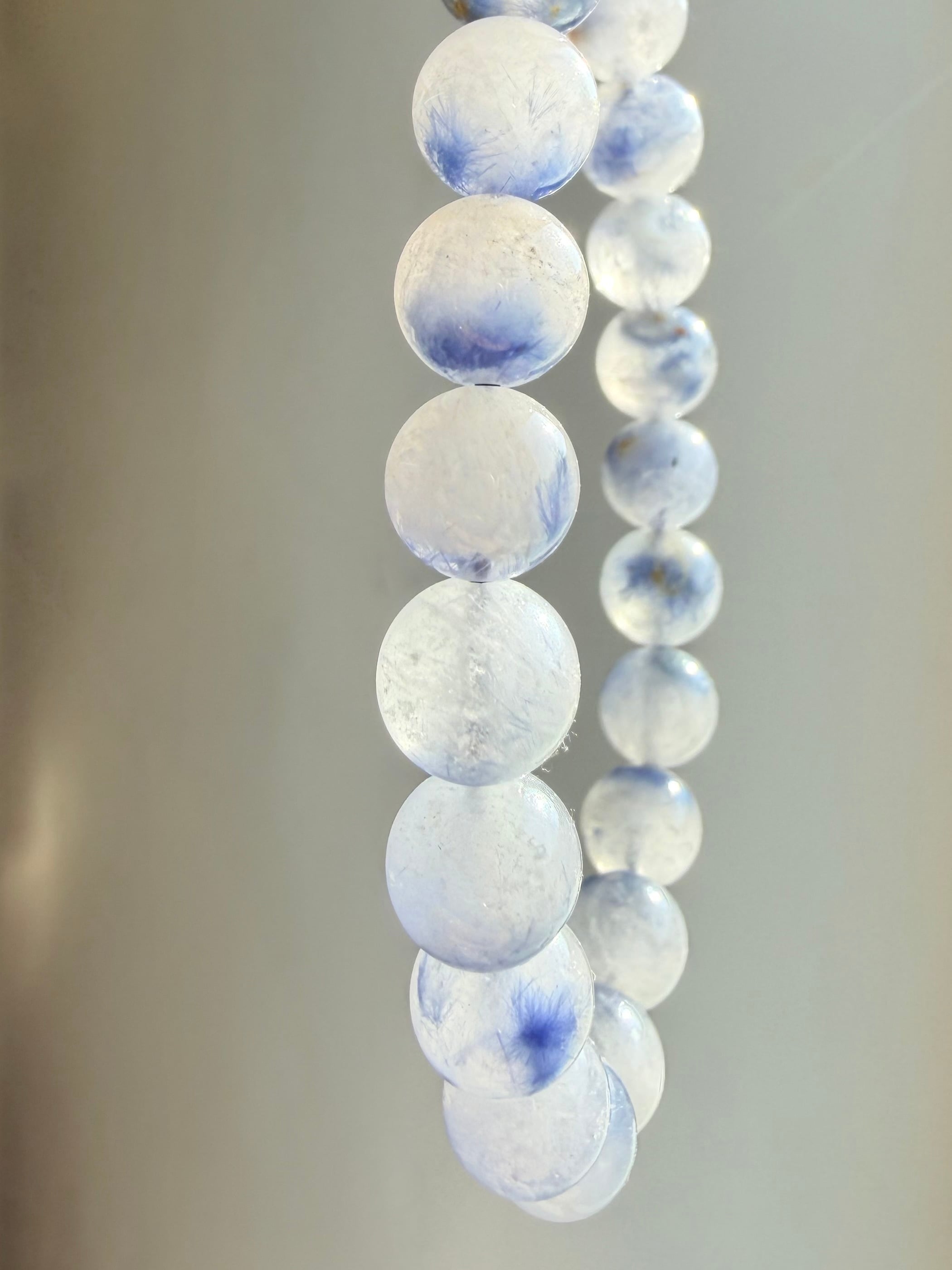 やわらかなミルキーホワイトに、ふわりと広がる淡いブルー。