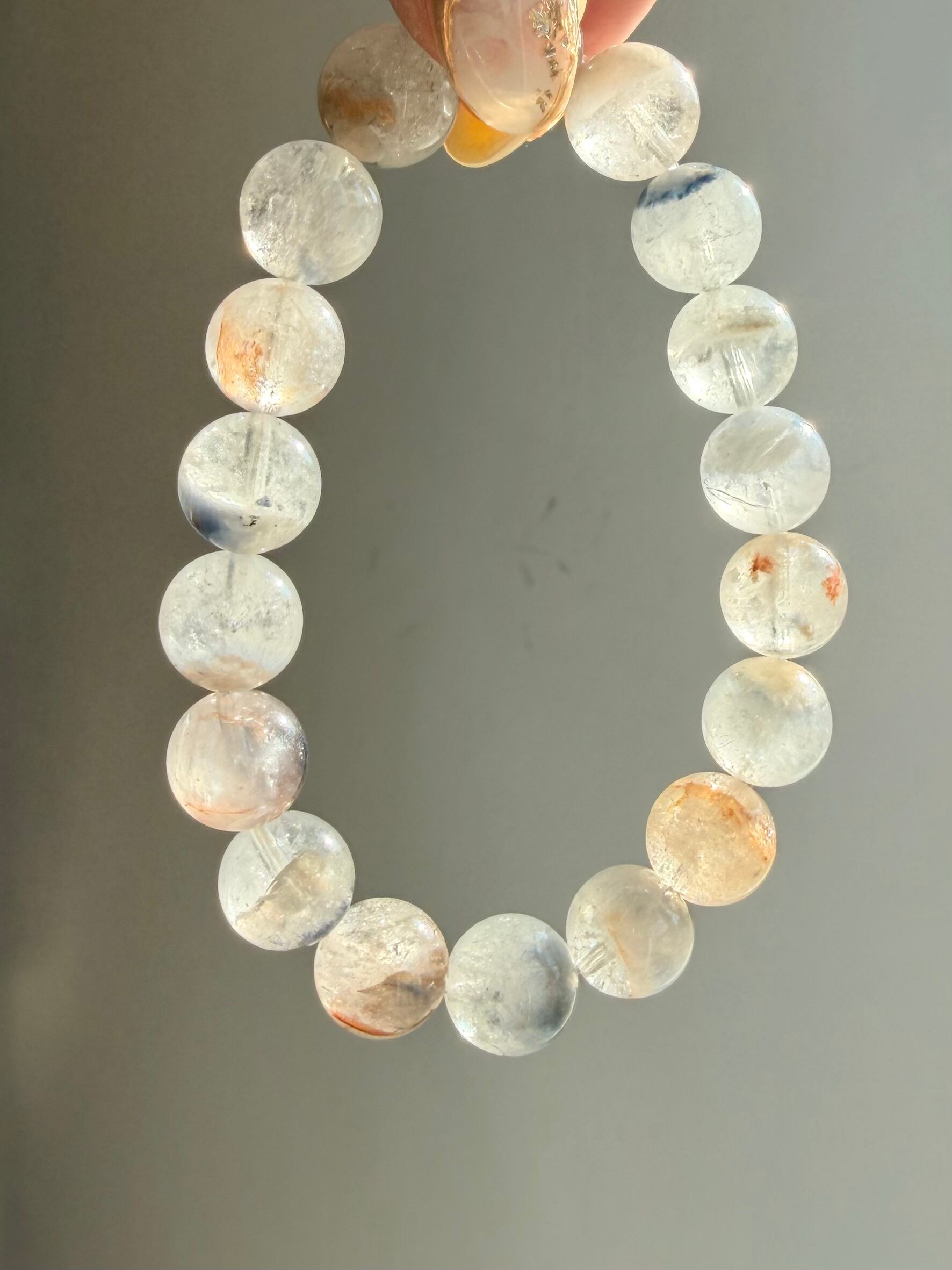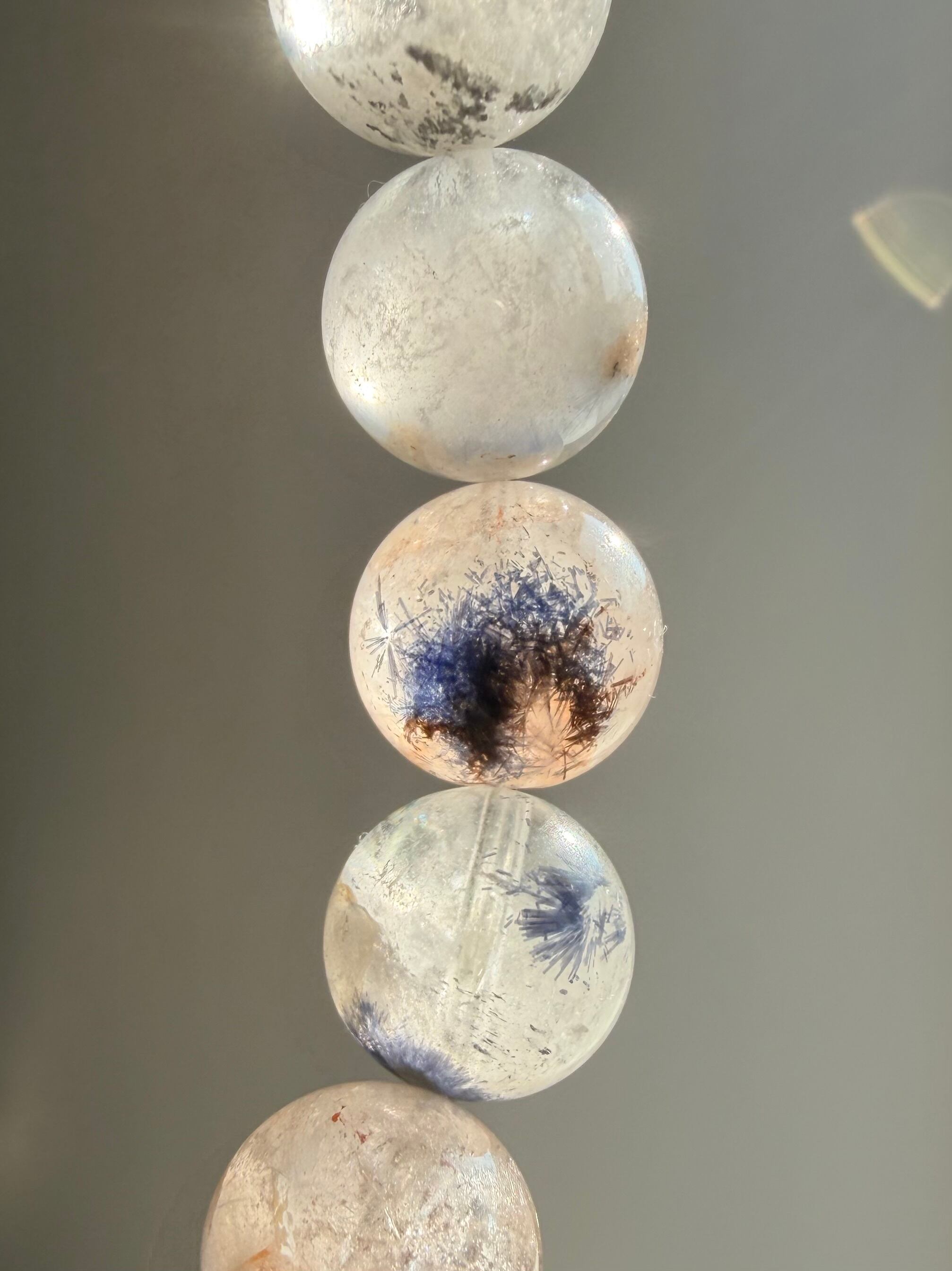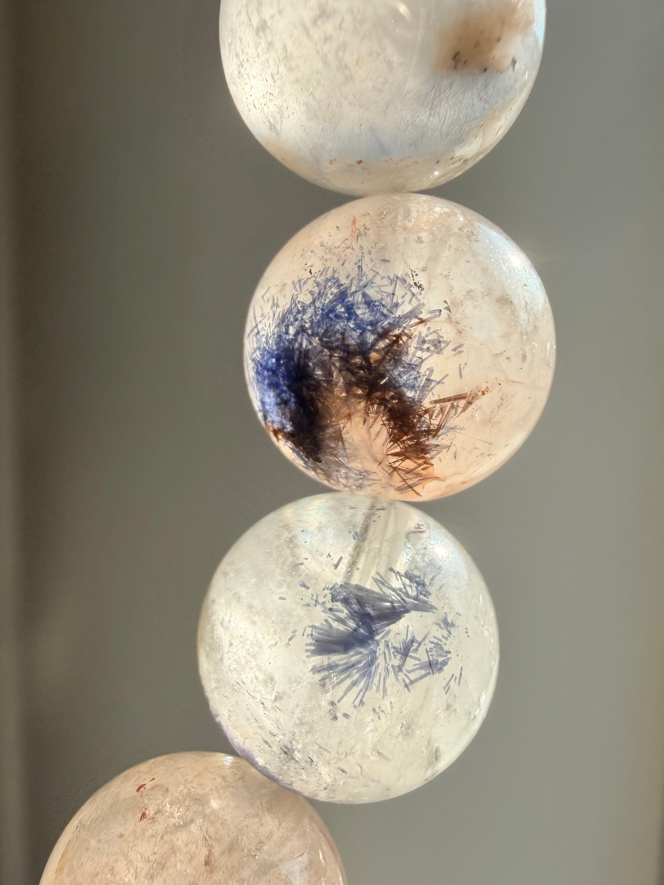 透明な水晶の中に、青と、やわらかなイエローやブラウンが混ざり合うこの表情。