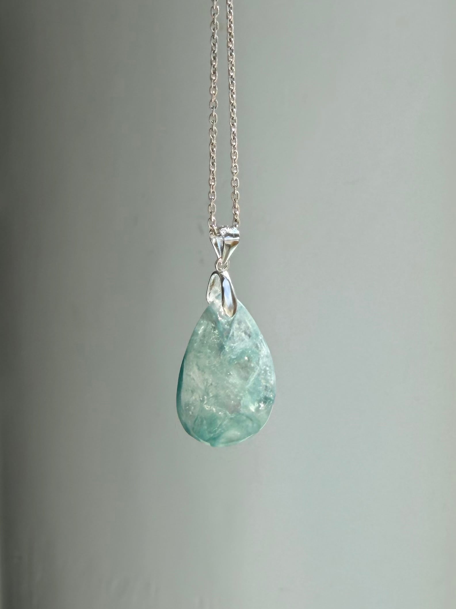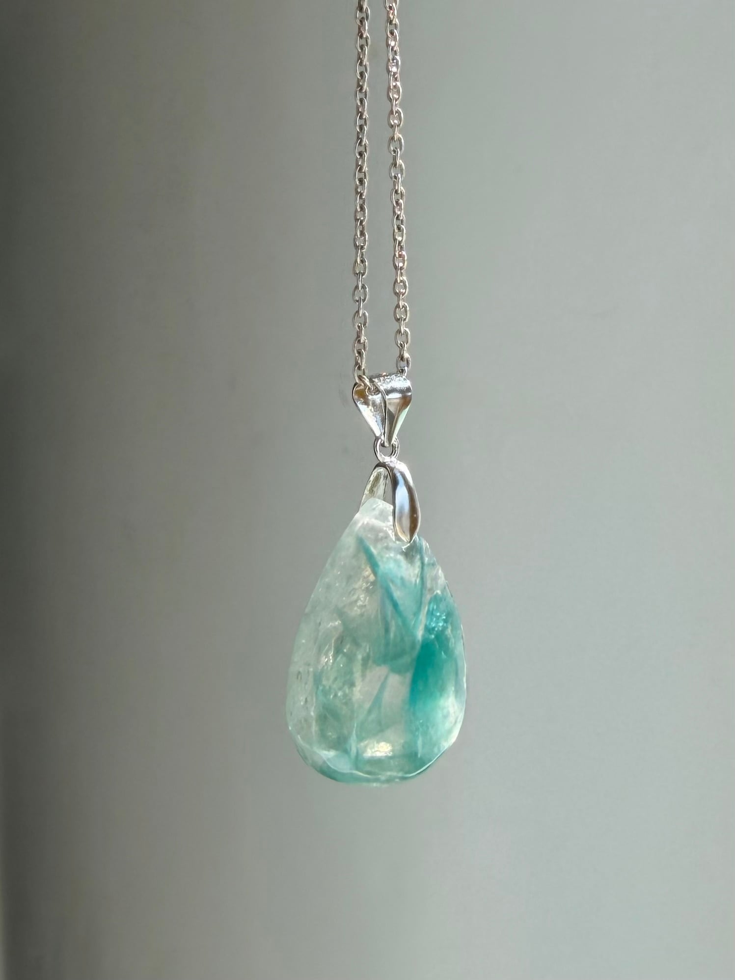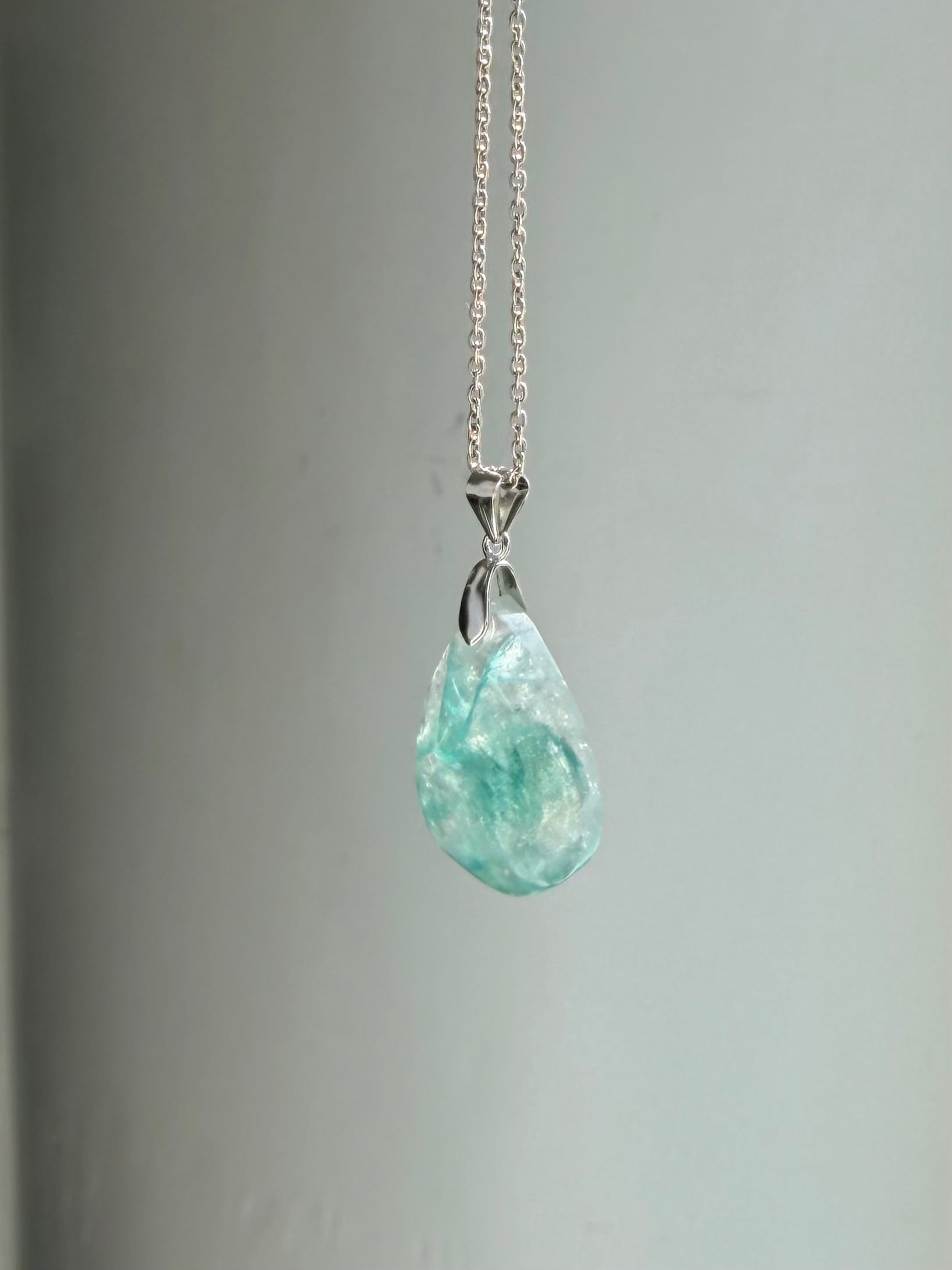 透明なシリカの中に ふわっと広がるマイカ特有のキラキラ感⟡.·*.そして水の中にやさしく色が溶けていくようなブルーグリーン。爽やかなペンダントトップですෆ