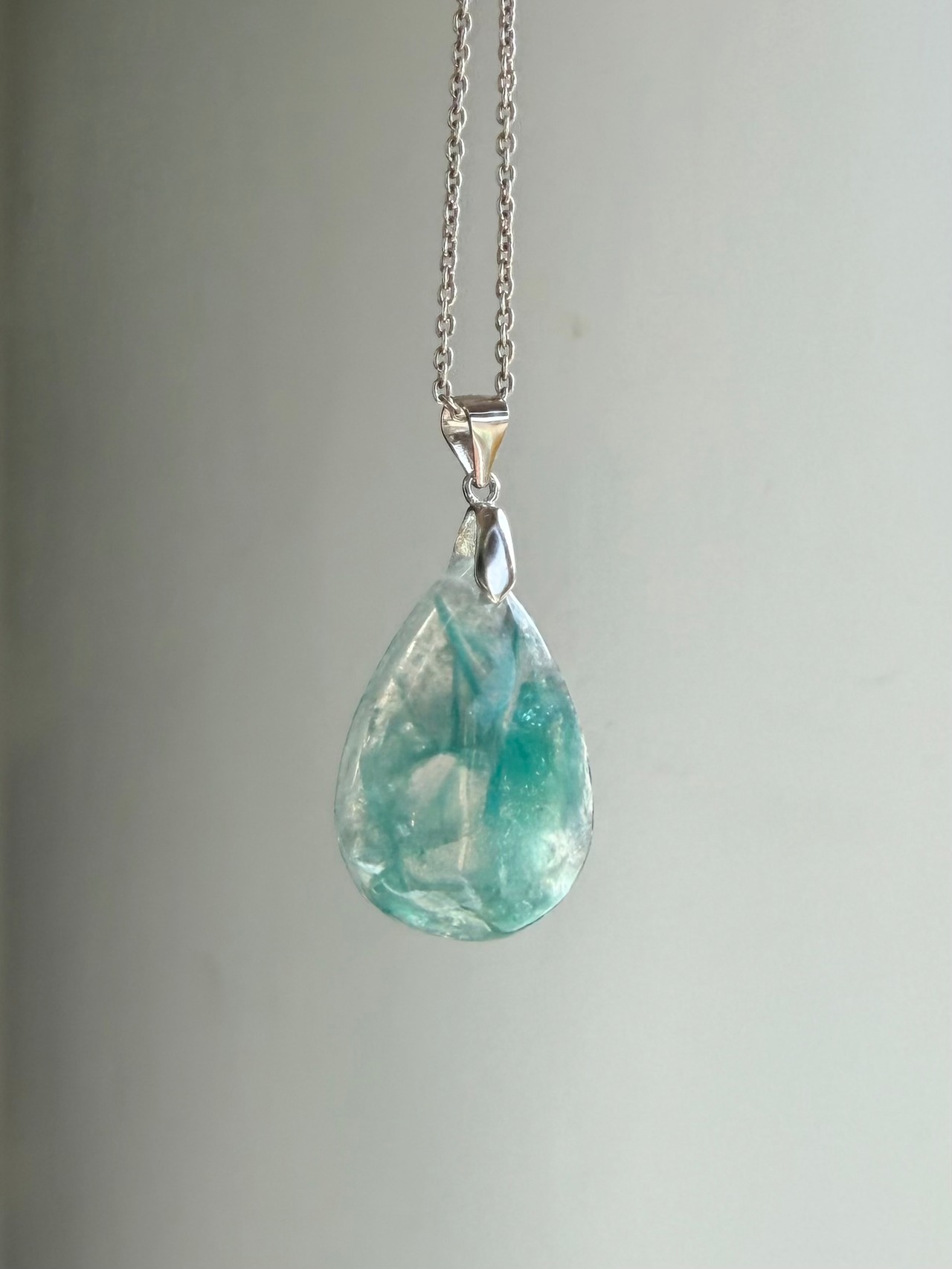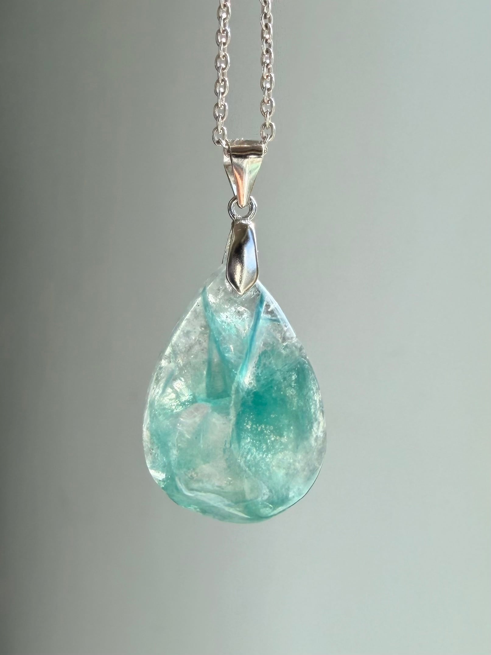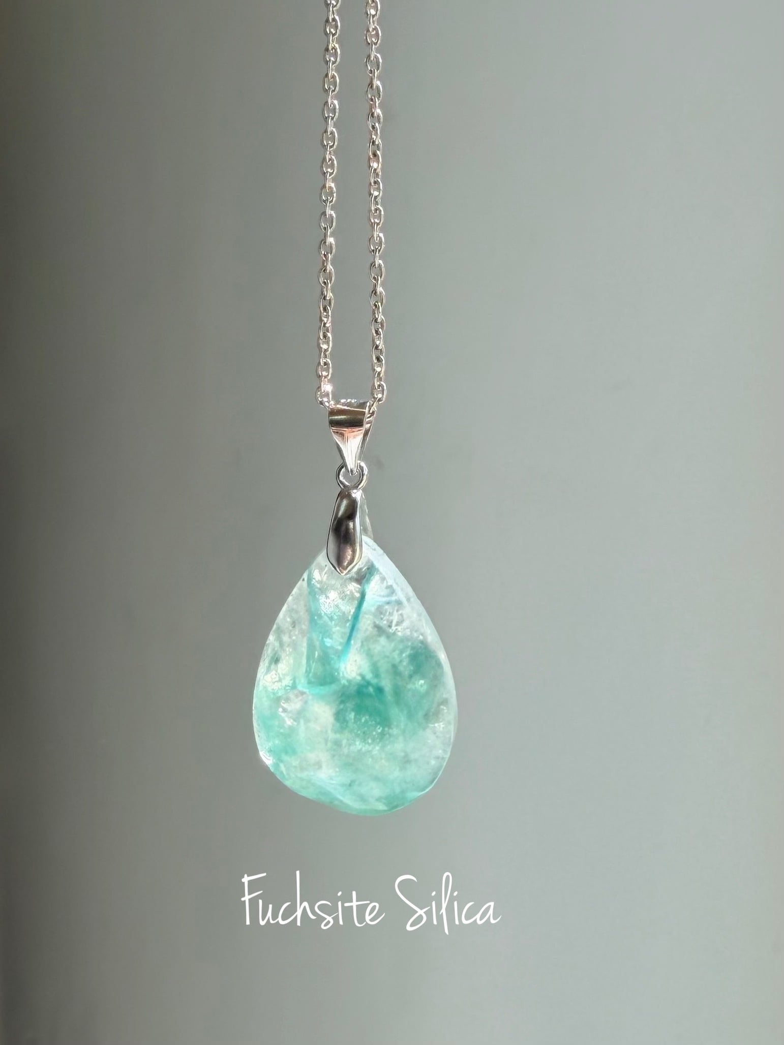 透明なシリカの中に ふわっと広がるマイカ特有のキラキラ感⟡.·*.そして水の中にやさしく色が溶けていくようなブルーグリーン。爽やかなペンダントトップですෆ